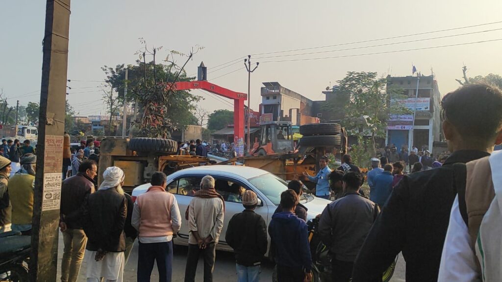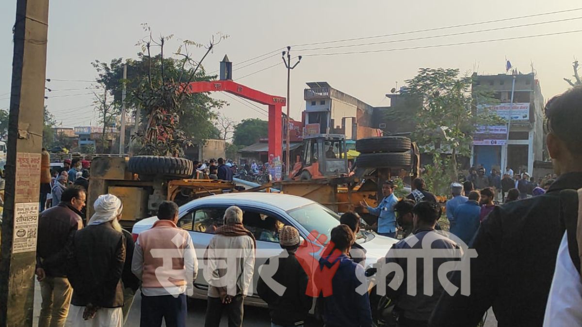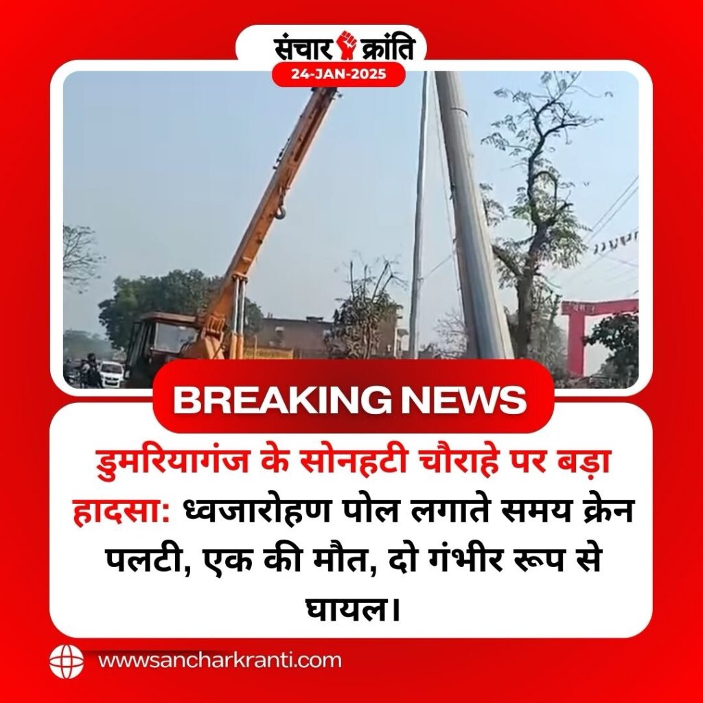 संचार क्रांति- सिद्धार्थनगर : जिले के डुमरियागंज क्षेत्र के सोनहटी चौराहे पर तिरंगे का फ्लैग पोल लगाते समय बड़ा हादसा हो गया। पोल लगाने के दौरान क्रेन पलटने से फ्लैग पोल गिर गया, जिससे एक व्यक्ति की मौत हो गई और दो लोग गंभीर रूप से घायल हो गए।